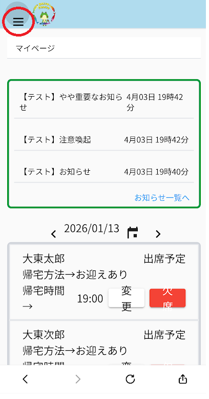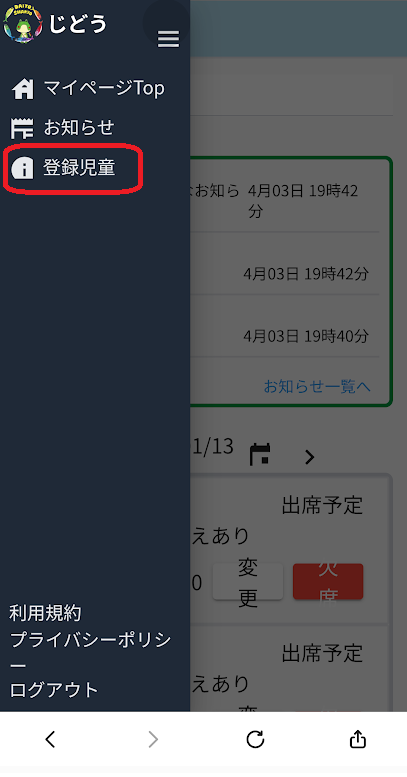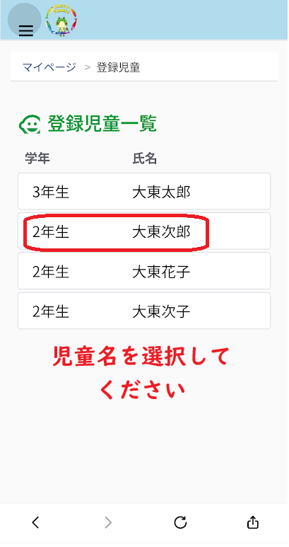 ②登録児童をクリック